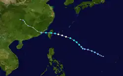 A cold core low developed tropical characteristics and became Tropical Depression 8W on July 6. It tracked westward, becoming a tropical storm later that day and a typhoon on July 7. After briefly weakening to a tropical storm, Clara re-attained typhoon status, and it peaked in intensity on July 10, reaching winds of 115 mph. Clara weakened to a 90 mph typhoon just before hitting Taiwan on the 11th, and it dissipated over China the next day. Clara's heavy rains caused 69 fatalities and a further 32 people to be reported as missing.