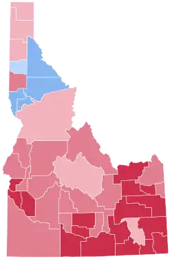 | Latah | 4,708 | 51.59% | 3,782 | 41.44% | 636 | 6.97% | 926 | 10.15% | 9,126 |