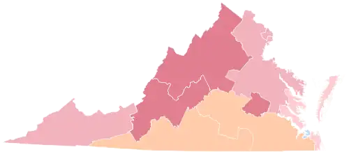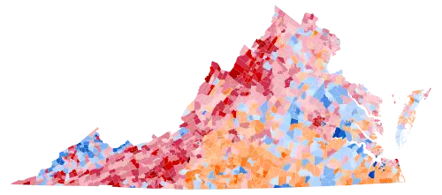 For over sixty years Virginia had had the most restricted electorate in the United States due to a cumulative poll tax and literacy tests.[2] Virginia would be almost entirely controlled by the conservative Democratic Byrd Organization for four decades,[3] although during the organization's last twenty years of controlling the state it would direct many Virginia voters away from the national Democratic Party due to opposition to black civil rights and to the fiscal liberalism of the New Deal.[4] After the Twenty-Fourth Amendment and Harper v. Virginia State Board of Elections, the state's electorate would substantially expand, since the lower classes were no longer burdened by poll taxes. At the same time, the postwar Republican trend of the Northeast-aligned Washington D.C. and Richmond suburbs, which had begun as early as 1944, would accelerate[5] and become intensified by the mobilisation of working-class Piedmont whites against a national Democratic Party strongly associated with black interests.[6]