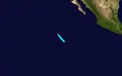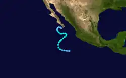 65 mph (105 km/h) Tropical Storm Orlene hit Mexico in eastern Oaxaca on September 8, having maintained a northeast track for its short lifetime.