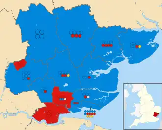 All 97 seats to Essex County Council 49 seats needed for a majority | |||||||||||||||||||||||||||||||||||||||||||||||