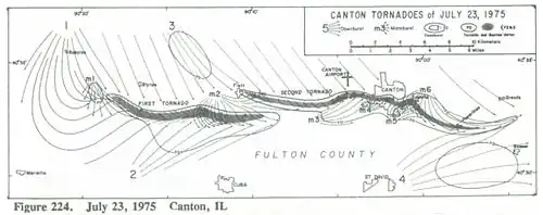The Canton, Illinois Tornadoes of 1975 was a destructive summer tornado event which occurred as part of a significant severe thunderstorm outbreak concentrated from eastern Iowa across northern and central Illinois on the afternoon and evening of July 23, 1975.[2][3]