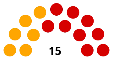 Last election 58.87%, 13 seats 41.13%, 2 seats