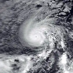 At the time, Fico was the longest-duration hurricane and furthest-traveled hurricane on record in the Central Pacific. It tracked further than any West Pacific typhoon by that point, and only one typhoon – Rita in 1972 – persisted at that intensity longer than Fico. In the Atlantic, only hurricanes Ginger, Carrie, and Faith exceeded Fico with regard to distance traveled or time spent as a hurricane.[8] Fico produced considerable impacts in Hawaii. Southerly flow in association with a cyclone over the Southern Hemisphere combined with east-northeasterly flow from the hurricane, producing beach road flooding along the southeastern shore of the Big Island while Fico was still 500 mi (800 km) away. Ocean waves, breaking at 15–20 ft (4.6–6.1 m) at the coast and larger values offshore, caused severe damage to beachfront homes and roads. Similar waves were observed along the coasts of Oahu and Kauai. A 43 ft (13 m) sloop became stranded in the cyclone's circulation, forcing a Navy torpedo boat to rescue six people on board. A 65 ft (20 m) tugboat was run aground on a reef along the southern shore of Kauai. By July 21, a strong trade wind gradient exacerbated by the presence of Fico caused widespread winds over 60 mph (97 km/h), which resulted in downed trees and power outages. Overall damage in Hawaii totaled $200,000.[9] A week later, the remnants of the storm became intertwined with a strong frontal system, producing heavy rain and winds up to 45 mph (72 km/h) to the Aleutian Islands.[7]