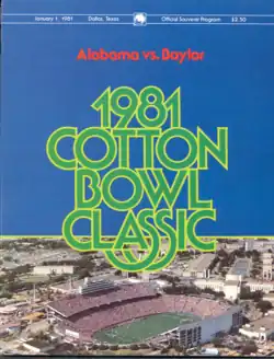 The 1981 Cotton Bowl Classic was the 45th edition of the college football bowl game, played at the Cotton Bowl in Dallas, Texas, on Thursday, January 1. Part of the 1980–81 bowl game season, it matched the ninth-ranked Alabama Crimson Tide of the Southeastern Conference (SEC) and the #6 Baylor Bears of the Southwest Conference (SWC). Favored Alabama shut out the Baylor offense and won, 30–2.[2][3][4]