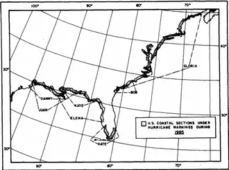 - ^ Robert A. Case (December 10, 1985). Preliminary Report: Hurricane Kate 15-23 November 1985. National Hurricane Center (Report). Miami, Florida: National Oceanic and Atmospheric Administration. p. 1. Retrieved July 29, 2013.