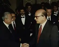 Francesco Cossiga the day of his inauguration with the Prime Minister Bettino Craxi