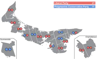 All 32 seats in the Legislative Assembly of Prince Edward Island 17 seats needed for a majority | |||||||||||||||||||||||||||||||||||||