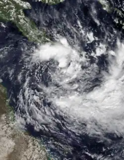On 5 November, the JTWC started to monitor a tropical disturbance, that was located about 840 km (520 mi) to the southeast of Jakarta, Indonesia.[2] Over the next 24 hours the disturbance remained near stationary before moving slowly towards the north-west over the next few days. The JTWC then initiated advisories on Tropical Cyclone 02S during 8 November, with 1-minute sustained windspeeds equivalent to a tropical storm on the SSHS. During that day while 02S continued to move towards the west, 02S intensified quickly to obtain 1-minute sustained windspeeds of 100 km/h (60 mph). The system continued to move westwards without intensifying any further until it moved into the South-West Indian Ocean during 11 November where it was named Barisaona, by the Mauritius Meteorological service. According to the Reunion Meteorological Service, Barisaona ultimately peaked on 16 November with 10-minute sustained windspeeds of 140 km/h (85 mph), while the JTWC estimated that the cyclone peaked on 17 November with 1-minute windspeeds of 185 km/h (115 mph). The cyclone then dissipated around 23 November.