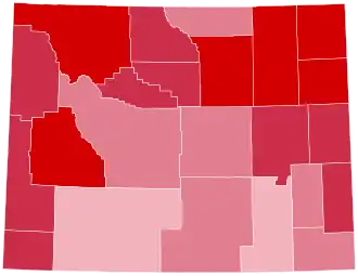 Bush won the election in Wyoming with a solid 22-point landslide, sweeping all 23 of the state's counties. Dukakis' best county, and Bush's worst, was Sweetwater County, which Bush won by 60 votes, or less than half of 1%. Sweetwater County is one of Wyoming's "Union Pacific counties" that traditionally formed the Democratic Party's base in the state.[2] Bush broke 70% in six counties, of which four were in the state's east and one, Park County, in the Bighorn basin, traditional areas of Republican strength in the state;[3] Sublette County rounded out this group. Overall, however, Bush's 22.52% margin in the state made it 14.80% more Republican than the nation overall. The Mountain West had trended Republican beginning in the 1952 election;[4] after voting for Truman in the nationally close 1948 election, Wyoming had consistently voted to the right of the country in every subsequent election. In 1988, it did so once again, even as some other Mountain states' traditional Republicanism wavered, as in Colorado and Montana. Bush's vote share of 60.53% made Wyoming his third-best state in the region (after Utah and Idaho), and his sixth-best overall (after Utah, New Hampshire, Idaho, South Carolina, and Florida). Along with New Hampshire, Nevada, Delaware, and Maine, it was also one of five states where every county voted for Bush.