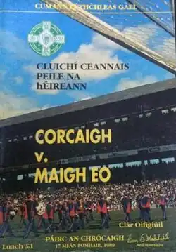 In what is regarded as one of the best and most entertaining finals of its era, the Cork and Mayo All-Ireland decider provided "great fun at a time when football badly needed some".[1] Cork entered the game hoping to avoid the unwanted accolade of becoming the first team in almost fifty years to lose three successive All-Ireland finals. Inspired by this they got off to a great start with three quick points before Mayo settled into the match. At half time Cork led by 0–10 to 0–8.