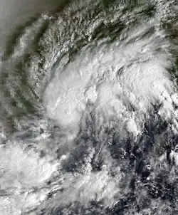 On December 14, the IMD reported that a depression had developed within the Intertropical Convergence Zone over the southern Bay of Bengal.[9] Over the next day the system moved north-westwards and gradually developed into a cyclonic storm, as the JTWC initiated advisories on the depression and assigned it the designation Tropical Cyclone 04B.[9][2] The system subsequently continued to intensify, as it recurved and moved through a break in the subtropical ridge of high pressure.[7][2] Late on December 16, the JTWC reported that the cyclone had peaked as a tropical storm, with 1-minute wind speeds of 85 km/h (55 mph).[12] Early on December 17, the IMD reported that the system had peaked as a Severe Cyclonic Storm with 3-minute wind speeds of 100 km/h (60 mph).[9] The system subsequently started to weaken later that day, as it encountered increasing upper-level wind shear associated with the mid-latitude westerlies.[2] During the next day the system weakened into a Cyclonic Storm, before it degenerated into a depression.[9] The system subsequently made landfall on Bangladesh near Cox's Bazar, before it was last noted over Myanmar by the JTWC during December 19.[9][12] The system caused some deaths and damages in both Bangladesh and Myanmar.[4]