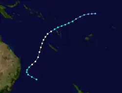 Esau moved into the Australian region and brought gale-force winds to the Solomon Islands during 29 February.[8] In the same time, the JTWC also reported that Esau had peaked with 1-minute sustained wind speeds of 240 km/h (150 mph), which made it equivalent to a category 4 hurricane on the Saffir-Simpson hurricane wind scale.[9] However, Esau moved back into the South Pacific basin and started to weaken the next day.[10][11]