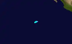 Signs of organization were evident late on August 2 when the wave was south of the Gulf of Tehuantepec. Then, on August 4, Tropical Depression Eight-E was formed while centered 350 mi (560 km) south-southeast of Acapulco. Despite the presence of easterly shear, the depression gradually intensified as the center moved toward the west-northwest, paralleling the coast of Mexico. Then, it reached tropical storm strength the same day. At that time, it was centered south-southwest of Acapulco. It peaked on August 5 with a central pressure of 993 mbar (29.3 inHg) and maximum sustained winds of 75 mph (121 km/h) while 255 mi (410 km) of Manzanillo, Colima. After its peak, Guillermo weakened to tropical storm status as it began losing convection. It subsequently weakened to a tropical depression and dissipated after that on August 10.[23] There were no damages or casualties associated with this tropical cyclone.[24]