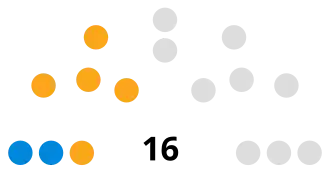 Last election 6 seats, 19.7% 10 seats, 49.7% 0 seats, 22.2%
