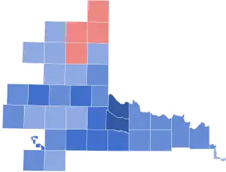 County results Sarpalius: 50–60% 60–70% 70–80% 80–90% Boulter: 50–60%