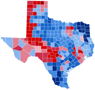 County results Laughlin: 50–60% 60–70% 70–80% 80–90% Garza: 50–60%