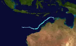 Cyclone Oscar was a weak system, and only barely reached cyclone strength on 3 January 1994 for about a 12-hour period. It moved on a generally west-southwest course parallel to the Kimberley and Pilbara coasts.[2]