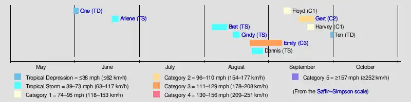 Hurricane GertHurricane Emily (1993)Tropical Storm Cindy (1993)Tropical Storm Bret (1993)Tropical Storm Arlene (1993)Tropical Depression One (1993)Saffir–Simpson scale