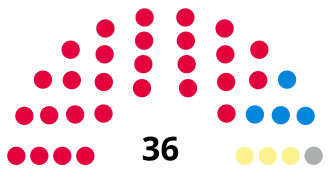 Last election 26 seats, 36.5% 12 seats, 29.1%