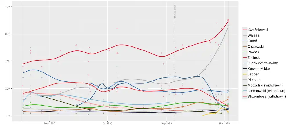 - ^ "Raport z badania exit poll przeprowadzonego w dniu II tury wyborów prezydenckich 1995" (in Polish). 19 November 1995.