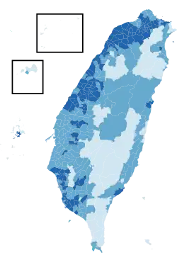 | Lienchiang County | 3,895 | 356 | 13.56% | 1,221 | 46.51% | 35 | 1.33% | 1,013 | 38.59% | 53 | 68.75% | 1,186 |