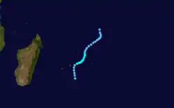 On February 16, Cyclone Victor crossed into the basin from the Australian Region with a well-defined circulation but little convection. Despite being downgraded to a tropical disturbance, the system was named Cindy by the Mauritius Meteorological Service on February 16. The system continued gradually weakening while turning more to the southwest, dissipating on February 19.[1] This marked the end of a 50‑day period in which the related storms Katrina and Victor-Cindy were active.[15]