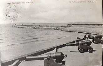 Old practice battery of 64 Pounder guns of the Ayr companies, pictured near the pier in 1907