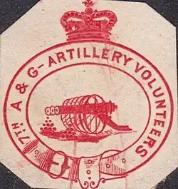 The enthusiasm for the Volunteer movement following an invasion scare in 1859 saw the creation of many Rifle and Artillery Volunteer Corps composed of part-time soldiers eager to supplement the Regular British Army in time of need.[3][4][5][6] The 1st Administrative Brigade of Ayrshire Artillery Volunteers was formed with its headquarters (HQ) at Irvine, North Ayrshire, in November 1860. It comprised the following Ayrshire Artillery Volunteer Corps (AVCs):[1][7][8][9][10]