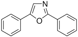 2,5-Diphenyloxazole (PPO) is an organic scintillator.[2] It is used as a wavelength shifter (also called a "primary shifter" or "fluor"), which means that it converts shorter wavelength light to longer wavelength light. Its output spectrum peaks at 385 nm, which is in the range of UV light.