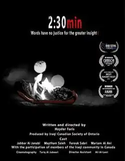 2:30 min is an Iraqi experimental film by Iraqi film director Hayder Faris. The film won "Best Experimental Film" award at Canada Independent Film Festival, which was held on 26 January 2018 in Montreal, Canada.[1]