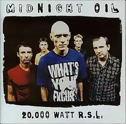 20,000 Watt R.S.L. is a compilation album by Australian rock band Midnight Oil released on 13 October 1997 on their own label Sprint Music.[4][5] The word "Collection" appears on the front of the CD along the hinge in the same type face as the title and the name of the band and may have been intended as part of the album's title; however, it does not appear on the spine. The release has also been distributed inside a cardboard sleeve which adds "Midnight Oil: The Hits" to the album art, distinguishing it as a compilation album.