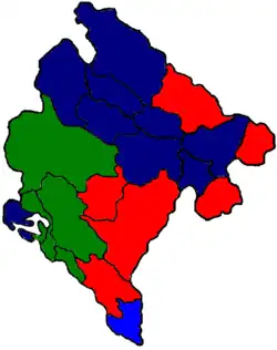 After the elections the ruling DPS-SDP coalition remained in power in Bar, Bijelo Polje, Danilovgrad, Plav and Rožaje municipalities. The major opposition coalition Together for Change (SNP-SNS-NS) formed majority in Mojkovac, Berane, Žabljak, Plužine, Šavnik, Pljevlja, Andrijevica and Kolašin, while in Nikšić, Tivat, Kotor, Cetinje and Budva they formed a post-election coalition with Liberal Alliance of Montenegro to form municipal governments.[1][2]