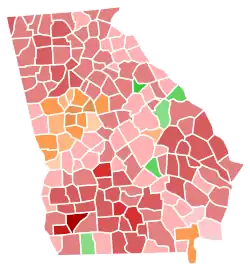 Isakson: 40–50% 50–60% 60–70% 70–80% 80–90% >90% Majette: 40–50% 50–60% 60–70% 70–80% 80–90% >90% Tie: 40–50% 50% No data | |||||||||||||||||