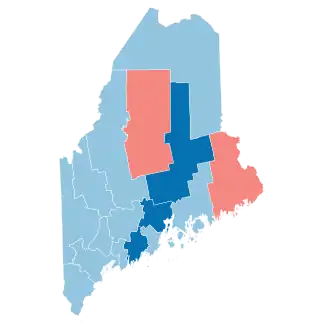 Maine was considered by some to be a swing state, because of the closeness of some polls.[1] However, the polls were consistently won by Kerry and neither campaign prioritized the state. On election day, Democrat John Kerry won the popular vote with 53.57% over George W. Bush with 44.58%. This is the most recent presidential election in which a losing Democrat won Maine's 2nd congressional district, and remained the last time until 2020 that the district voted for a losing candidate. This is the first time since 1968 in which a Republican won the popular vote without the state. Bush is the first Republican to win two terms in the White House without carrying Maine at least once and the only Republican to lose Maine's 2nd congressional district and win the election.