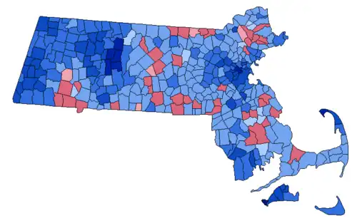 Massachusetts was (and is) one of the bluest states in the nation. Massachusetts has voted for the Democratic presidential nominee in every election since 1960 except for Ronald Reagan's landslide victories of 1980 and 1984. In 1972, only Massachusetts and the District of Columbia voted for Democratic U.S. Senator George McGovern as Republican Richard M. Nixon won reelection.