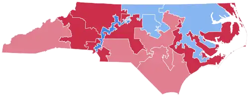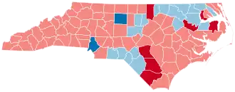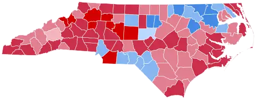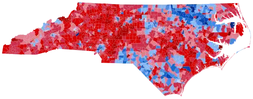As of the 2024 presidential election, this is the last election in which Pitt County, Forsyth County, Wilson County, Wake County, Buncombe County, and Cumberland County voted for a Republican presidential candidate.[10] This is also the last presidential race in where any candidate won North Carolina by double digits, as well as the last time the state was not seriously contested.