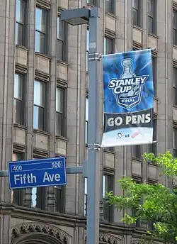 29. ^ Harlan, Chico (April 12, 2008). "Downtown Penguins fans rally in support of team's first playoff game". Pittsburgh Post-Gazette. Archived from the original on November 3, 2007. Retrieved September 29, 2008.
