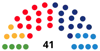 Last election 15 seats, 33.6% 9 seats, 21.4% 7 seats, 16.1%