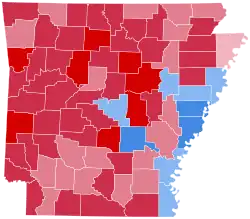 Although former President Bill Clinton, a Democrat, easily carried his home state of Arkansas in 1992 and 1996, the state was largely considered a safe state for McCain. Early polls gave McCain a 9-point lead among possible voters on Election Day.[26] Although the state was still strongly Democratic at the non-presidential levels, on Election Day, Arkansas voted for McCain by a margin of approximately 20% — ten points better than Bush's showing four years earlier. In this election, Arkansas voted 27.12% to the right of the nation at-large.[27]