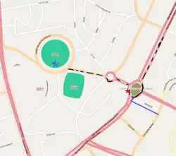 Security cameras captured footage of several gunmen carrying automatic weapons and backpacks, firing on the convoy from the Liberty Square roundabout.[18] They were later seen jogging up the street and escaping on motorcycles.[19] The video was broadcast around the world presenting pictures of the attacks.[20] CCTV footage has been made public.[21] They arrived at 8:39 am local time and left at 8:46 am.[21] The attackers were armed with AK-47 assault rifles, hand grenades, RPG launchers, claymores and explosive charges.[4][22]