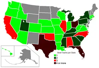 ![]() Bowl sites by state | |||||||||||||||||||||||||||||||||||||||||||||||||||||||||
