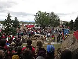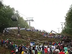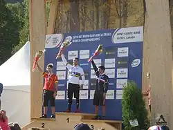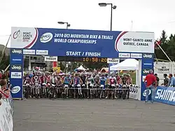 ![]() Start of the Junior Men's cross-country at the 2010 UCI Mountain Bike & Trials World Championships in Mont-Sainte-Anne, Quebec, Canada | |
