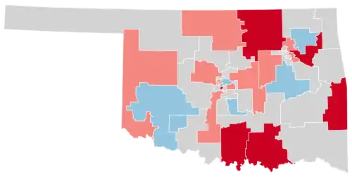 The 2008 elections saw a nationwide Democratic wave election, including the election of Barack Obama to the presidency, as well as the expansion of Democratic majorities in the Senate and House of Representatives.[1] At the state legislative level, Democrats won control of 27 state legislatures, while Republicans only held 14, with 8 divided between parties. Democrats showed great strength across the country in that election, primarily losing ground only in the South, where they lost control of the Oklahoma Senate and the Tennessee House of Representatives.[2]