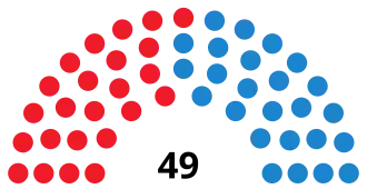 Last election 21 seats, 42.4% 26 seats, 52.0%