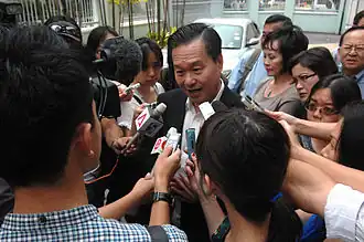 George Yeo Minister for Foreign Affairs from 2004 to 2011 and MP for Aljunied Group Representation Constituency (GRC) from 1988 to 2011, initially ruled out a run for president.[22][23][24][25] On 5 June, Yeo announced that he will make a decision on running for president within 2 weeks, and has asked his friends to pick up eligibility forms on his behalf.[26] Yeo later declined running for the presidency on 15 June via his Facebook page.[27][28]