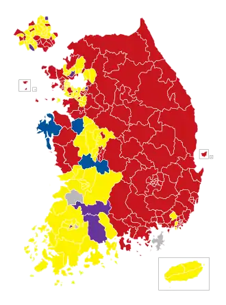 - 1.^ Comparison includes the Pro-Park Coalition, which split from and subsequently reintegrated with the Grand National Party.
