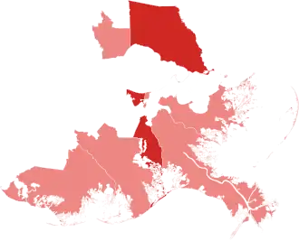 Parish results Richmond: 30–40% 40–50% 50–60% 60–70% Landrieu: 30–40% 40–50% Bailey: 30–40% |