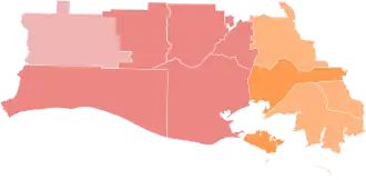 Runoff parish results Boustany: 40–50% 50–60% 60–70% 70–80% Landry: 40–50% 50–60% 60–70% |