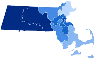 The 2012 United States House of Representatives elections in Massachusetts were held on Tuesday, November 6, 2012, to elect the nine U.S. representatives from the state of Massachusetts, a loss of one seat following the 2010 census,[1] for service in the 113th Congress from January 3, 2013, to January 3, 2015. The elections coincided with the elections of other federal and state offices, including a quadrennial presidential election. The candidate elected in each of the state's congressional districts was a member the Democratic Party.[2]